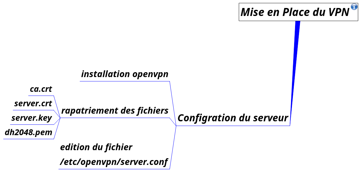 Comment identifie t-il les clients autorisés à se connecter ? | Le serveur vérifie le certificat client grâce au certificat de l'autorité de certification. S'il est correct il s'assure ensuite que le client ne fait pas partie des clients revoqués. Si tout est bon alors il autorise la connexion VPN |