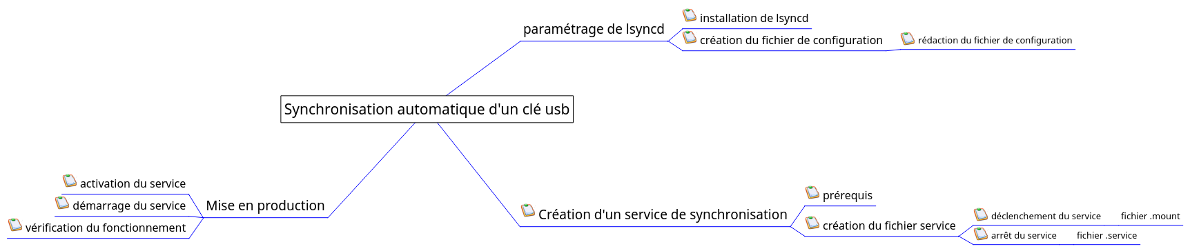 Pour Rappel notre objectif est que l'événement déclencheur de la synchronisation soit le branchement d'une clé usb précise. L’exécution de notre daemon doit donc être conditionné au montage du système de fichier. Pour y parvenir on s'appuiera sur systemd. Nous allons donc créer un service dédié qui va lancer la synchronisation paramétrée dans la partie précédente.Prérequis